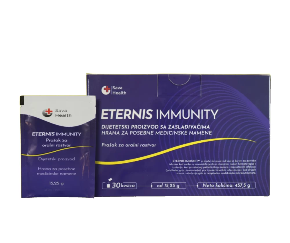 Eternis Immunity je hrana za posebne medicinske namene namenjena osobama sa povećanim potrebama za mikronutrijentima u stanjima oslabljenog imuniteta. Preporučuje se kao nutritivna podrška tokom i nakon prehlade, gripa, upale pluća, kao i u periodima oporavka posle operacija, infekcija ili terapija koje mogu oslabiti imuni odgovor organizma.